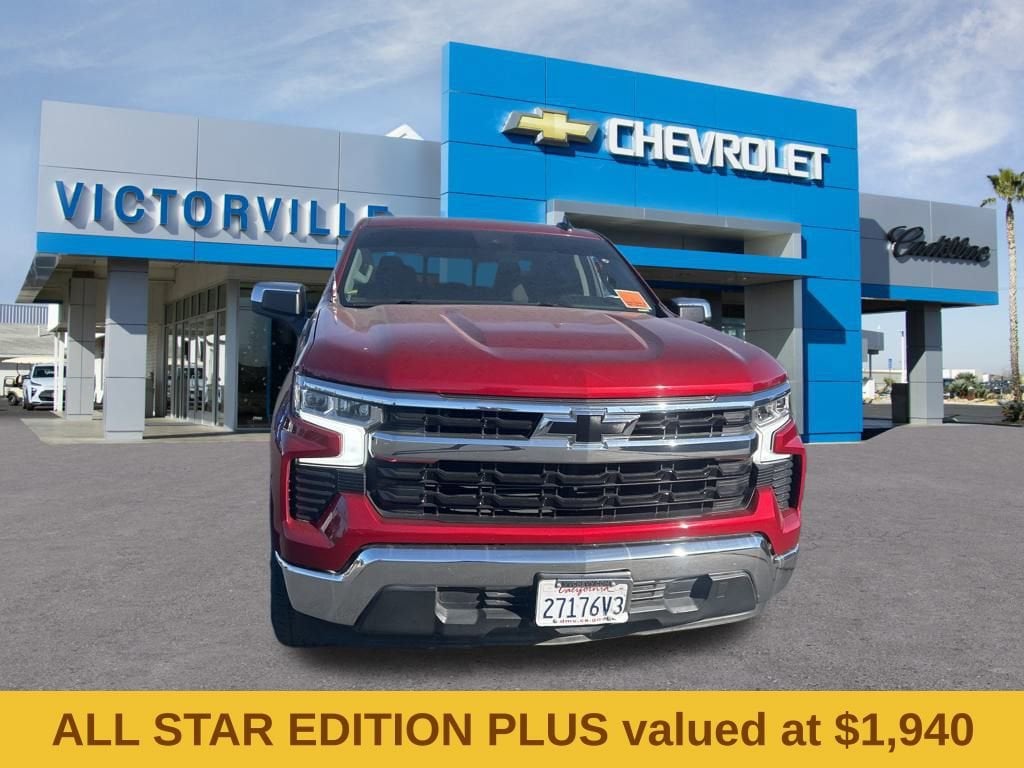 All Star Edition Plus (Wheels: 20 x 9 Painted Aluminum), Convenience Package (10-Way Power Driver Seat w/Lumbar, 120-Volt Bed Mounted Power Outlet, 120-Volt Instrument Panel Power Outlet, Dual Rear USB Ports (Charge Only), Dual-Zone Automatic Climate Control, Heated Driver & Front Outboard Passenger Seats, Heated Steering Wheel, Keyless Open & Start, and Wrapped Steering Wheel), Convenience Package II (Hitch Guidance w/Hitch View, Integrated Trailer Brake Controller, Power Sliding Rear Window w/Rear Defogger, Trailering App, and Universal Home Remote), High Capacity Suspension Package, Preferred Equipment Group 1LT (12.3 Multicolor Reconfigurable Digital Display, All-Star Edition, Auto-Locking Rear Differential, Bluetooth® For Phone, Chevrolet Connected Access Capable, Chrome Mirror Caps, Color-Keyed Carpeting Floor Covering, Compass, Deep-Tinted Glass, Electrical Steering Column Lock, Electronic Cruise Control, EZ Lift Power Lock & Release Tailgate, Front Rubberized Vinyl Floor Mats, HD Rear Vision Camera, Heated Power-Adjustable Outside Mirrors, Inside Rear-View Mirror w/Tilt, LED Cargo Area Lighting, OnStar & Chevrolet Connected Services Capable, Power Front Windows w/Driver Express Up/Down, Power Front Windows w/Passenger Express Down, Power Rear Windows w/Express Down, Rear 60/40 Folding Bench Seat (Folds Up), Rear Rubberized-Vinyl Floor Mats, SiriusXM w/360L, Standard Tailgate, Steering Wheel Audio Controls, Wi-Fi Hot Spot Capable, and Wireless Phone Projection), Remote Start Package (Electric Rear-Window Defogger, Remote Vehicle Starter System, and Theft Deterrent System (Unauthorized Entry)), Standard Suspension Package, Trailering Package (Hitch Guidance), Silverado 1500 LT, 4D Crew Cab, 2.7L Turbo, 8-Speed Automatic, RWD, Radiant Red Tintcoat, Black Cloth, 220 Amp Alternator, 3.42 Rear Axle Ratio, 4-Wheel Disc Brakes, 40/20/40 Front Split-Bench Seat, 6 Speakers, 6-Speaker Audio System, ABS brakes, Air Conditioning, Alloy wheels, AM/FM radio: SiriusXM with 360L, Apple CarPlay/Android Auto, Auto High-beam Headlights, Automatic Emergency Braking, Automatic temperature control, Brake assist, Bumpers: chrome, Cloth Seat Trim, Delay-off headlights, Driver door bin, Driver vanity mirror, Dual front impact airbags, Dual front side impact airbags, Electronic Stability Control, Following Distance Indicator, Forward Collision Alert, Front anti-roll bar, Front Black Bowtie Emblem (LPO), Front Center Armrest w/Storage, Front dual zone A/C, Front License Plate Kit, Front Pedestrian Braking, Front reading lights, Front wheel independent suspension, Fully automatic headlights, Heated door mirrors, Heated front seats, Heated steering wheel, Illuminated entry, IntelliBeam Automatic High Beam On/Off, Lane Keep Assist w/Lane Departure Warning, Low tire pressure warning, Not Equipped w/Steering Column Lock, Occupant sensing airbag, Outside temperature display, Overhead airbag, Overhead console, Panic alarm, Passenger door bin, Passenger vanity mirror, Power door mirrors, Power driver seat, Power steering, Power windows, Premium audio system: Chevrolet Infotainment 3 Premium, Radio data system, Radio: Chevrolet Infotainment 3 Premium System, Rear reading lights, Rear step bumper, Rear window defroster, Remote keyless entry, Security system, Speed control, Speed-sensing steering, Split folding rear seat, Steering wheel mounted audio controls, Tachometer, Telescoping steering wheel, Tilt steering wheel, Traction control, Trip computer, Variably intermittent wipers, Voltmeter, and Wheels: 17 x 8 Bright Silver Painted Aluminum.