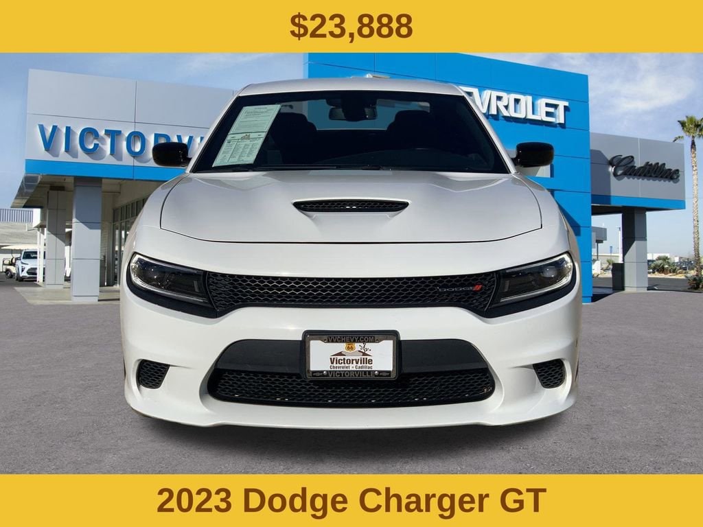Quick Order Package 2EH, Charger GT, 4D Sedan, 3.6L V6 24V VVT, 8-Speed Automatic, RWD, White Knuckle Clearcoat, Black Cloth, 1-Yr SiriusXM Guardian Trial, 2-Piece Shark Fin Antenna, 4-Wheel Disc Brakes, 4G LTE Wi-Fi Hot Spot, 6 Speakers, 8.4 Touchscreen Display, ABS brakes, Air Conditioning, Alloy wheels, AM/FM radio: SiriusXM, Anti-whiplash front head restraints, Apple CarPlay, Apple CarPlay/Android Auto, Auto-dimming Rear-View mirror, Automatic temperature control, Brake assist, Bumpers: body-color, Cloth Performance Seats, Compass, Delay-off headlights, Driver door bin, Driver vanity mirror, Dual front impact airbags, Dual front side impact airbags, Electronic Stability Control, Emergency communication system: SiriusXM Guardian, For Details, Visit DriveUconnect.com, Four wheel independent suspension, Front anti-roll bar, Front Bucket Seats, Front Center Armrest, Front dual zone A/C, Front License Plate Bracket, Front reading lights, Fully automatic headlights, Garage door transmitter: HomeLink, Google Android Auto, GPS Antenna Input, HD Radio, Heated door mirrors, Illuminated entry, Integrated Center Stack Radio, Integrated Voice Command w/Bluetooth, Knee airbag, Leather Shift Knob, Low tire pressure warning, Manufacturer's Statement of Origin, Media Hub (2 USB, AUX), Occupant sensing airbag, Outside temperature display, Overhead airbag, Overhead console, Panic alarm, ParkView Rear Back-Up Camera, Passenger door bin, Passenger vanity mirror, Power 2-Way Driver Lumbar Adjust, Power 8-Way Driver Seat, Power door mirrors, Power driver seat, Power steering, Power windows, Radio: Uconnect 4C w/8.4 Display, Rear anti-roll bar, Rear Armrest w/Cupholder Seat, Rear reading lights, Rear seat center armrest, Rear window defroster, Remote keyless entry, Speed control, Speed-Sensitive Wipers, Split folding rear seat, Spoiler, Steering wheel mounted audio controls, Tachometer, Telescoping steering wheel, Tilt steering wheel, Traction control, Trip computer, USB Host Flip, Variably intermittent wipers, and Wheels: 20 x 8 Satin Carbon PainteD.