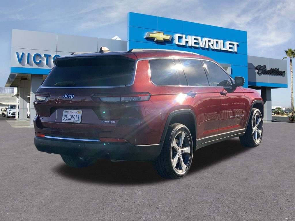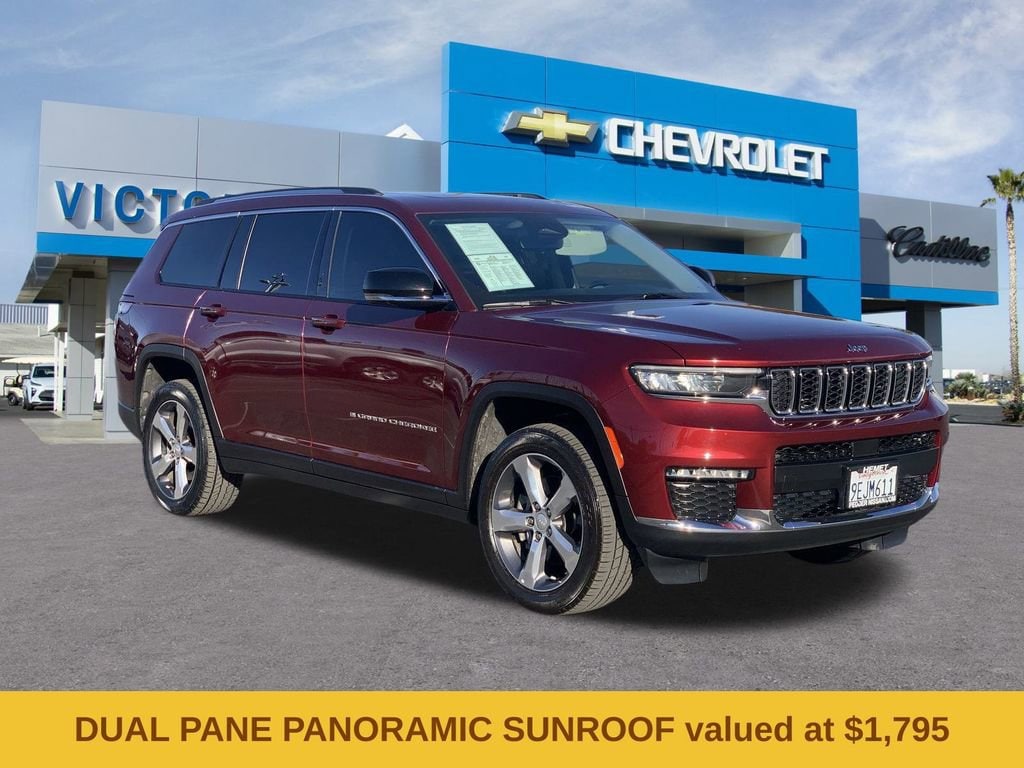 Quick Order Package 22E, Grand Cherokee L Limited, 4D Sport Utility, 3.6L V6 24V VVT, 8-Speed Automatic, RWD, Velvet Red Pearlcoat, Global Black Leather, 10.1 Touchscreen Display, 3.45 Rear Axle Ratio, 3rd row seats: split-bench, 4-Wheel Disc Brakes, 506 Watt Amplifier, 6 Speakers, 9 Amplified Speakers w/Subwoofer, ABS brakes, Air Conditioning, Alloy wheels, AM/FM radio: SiriusXM w/360L, Anti-whiplash front head restraints, Apple CarPlay, Apple CarPlay/Android Auto, Audio memory, Auto High-beam Headlights, Automatic temperature control, Brake assist, Bridgestone Brand Tires, Bumpers: body-color, Capri Leather Seats, Compass, Connected Travel & Traffic Services, Connectivity - US/Canada, Delay-off headlights, Disassociated Touchscreen Display, Driver door bin, Driver vanity mirror, Dual front impact airbags, Dual front side impact airbags, Dual-Pane Panoramic Sunroof, Electronic Stability Control, Emergency communication system, Four wheel independent suspension, Front anti-roll bar, Front Bucket Seats, Front Center Armrest w/Storage, Front dual zone A/C, Front fog lights, Front reading lights, Fully automatic headlights, Garage door transmitter, Google Android Auto, GPS Antenna Input, GPS Navigation, HD Radio, Heated door mirrors, Heated front seats, Heated rear seats, Heated steering wheel, Illuminated entry, Integrated Center Stack Radio, Integrated Voice Command w/Bluetooth, Interior Rear Facing Camera, Knee airbag, Leather steering wheel, Low tire pressure warning, Manual Fold Seatbacks, Memory seat, Normal Duty Suspension, Occupant sensing airbag, Outside temperature display, Overhead airbag, Overhead console, Panic alarm, ParkView Rear Back-Up Camera, Passenger door bin, Passenger vanity mirror, Power door mirrors, Power driver seat, Power Liftgate, Power passenger seat, Power steering, Power windows, Radio data system, Radio: Uconnect 5 Nav w/10.1 Display, Radio: Uconnect 5 w/8.4 Display, Rear air conditioning, Rear anti-roll bar, Rear reading lights, Rear window defroster, Rear window wiper, Reclining 3rd row seat, Remote keyless entry, Roof rack: rails only, Security system, SiriusXM Satellite Radio, SiriusXM w/360L, Speed control, Speed-Sensitive Wipers, Split folding rear seat, Spoiler, Steering wheel mounted audio controls, Tachometer, Telescoping steering wheel, Tilt steering wheel, Traction control, Trip computer, Turn signal indicator mirrors, USB Host Flip, Variably intermittent wipers, Wheels: 18 x 8.0 Fully Painted Aluminum 2, and Wheels: 20 x 8.5 Polished/Painted Aluminum.