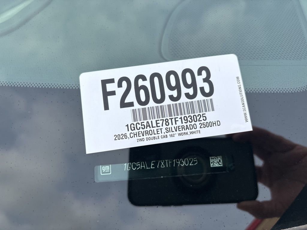 Summit White 2026 Chevrolet Silverado 2500HD Work Truck RWD 10-Speed Automatic 6.6L V8 10-Speed Automatic, Black Cloth.