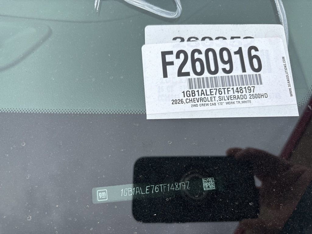 Summit White 2026 Chevrolet Silverado 2500HD Work Truck RWD 10-Speed Automatic 6.6L V8 10-Speed Automatic, Black Cloth.