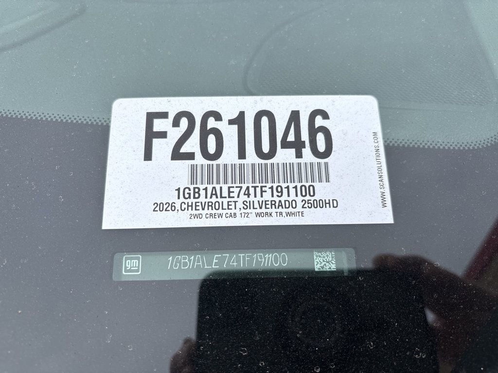 Summit White 2026 Chevrolet Silverado 2500HD Work Truck RWD 10-Speed Automatic 6.6L V8 10-Speed Automatic, Black Cloth.