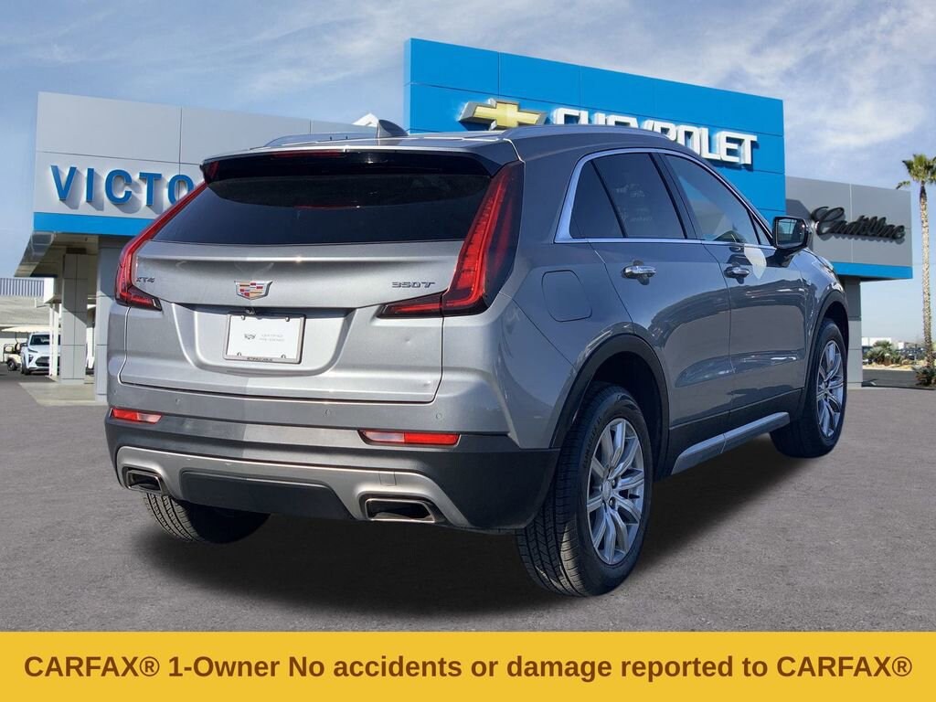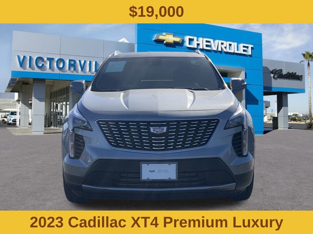 Preferred Equipment Group 1SD (2-Way Driver Seat Power Lumbar Control, 2-Way Passenger Seat Power Lumbar Control, 4.2 Diagonal Color Display Driver Info Center, 6-Way Power Passenger Seat Adjuster, 7-Speaker Audio System w/Auxiliary Amplifier, Auto-Dimming Inside Rear-View Mirror, Automatic Emergency Braking, Electronic Cruise Control w/Set & Resume Speed, Front & Rear Park Assist, HD Rear Vision Camera, and Manual Rake & Telescoping Steering Column), XT4 Premium Luxury Certified, 4D Sport Utility, 2.0L I4 Turbocharged, 9-Speed Automatic, FWD, Argent Silver Metallic, Black Leather, 3.47 Axle Ratio, 4-Wheel Disc Brakes, 7 Speakers, 8-Way Power Driver Seat Adjuster, ABS brakes, Air Conditioning, Alloy wheels, AM/FM radio: SiriusXM with 360L, Apple CarPlay/Android Auto, Auto High-beam Headlights, Auto-dimming door mirrors, Auto-dimming Rear-View mirror, Automatic temperature control, Brake assist, Bumpers: body-color, Compass, Delay-off headlights, Driver door bin, Driver vanity mirror, Dual front impact airbags, Dual front side impact airbags, Electronic Stability Control, Emergency communication system: OnStar and Cadillac connected services capable, Four wheel independent suspension, Front anti-roll bar, Front Bucket Seats, Front Center Armrest, Front dual zone A/C, Front License Plate Bracket, Front reading lights, Fully automatic headlights, Garage door transmitter, HD Radio, Heated door mirrors, Illuminated entry, Knee airbag, Leather Seating Surfaces, Leather steering wheel, Low tire pressure warning, Memory seat, Occupant sensing airbag, Outside temperature display, Overhead airbag, Overhead console, Panic alarm, Passenger door bin, Passenger vanity mirror, Power door mirrors, Power driver seat, Power Liftgate, Power passenger seat, Power steering, Power windows, Radio data system, Radio: Cadillac User Experience AM/FM Stereo, Rain sensing wipers, Rear anti-roll bar, Rear reading lights, Rear seat center armrest, Rear window defroster, Rear window wiper, Remote keyless entry, Road Emergency Tool Kit, Roof rack: rails only, Security system, SiriusXM w/360L, Speed control, Speed-sensing steering, Split folding rear seat, Spoiler, Standard Suspension, Steering wheel mounted audio controls, Tachometer, Telescoping steering wheel, Tilt steering wheel, Traction control, Trip computer, Turn signal indicator mirrors, Variably intermittent wipers, Voltmeter, Wheels: 18 10-Spoke Pearl Nickel Finish Alloy, and Wireless Apple CarPlay/Wireless Android Auto.