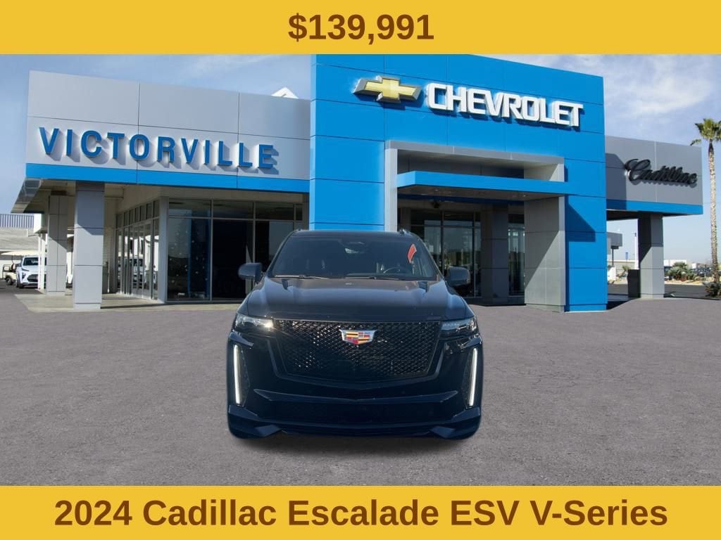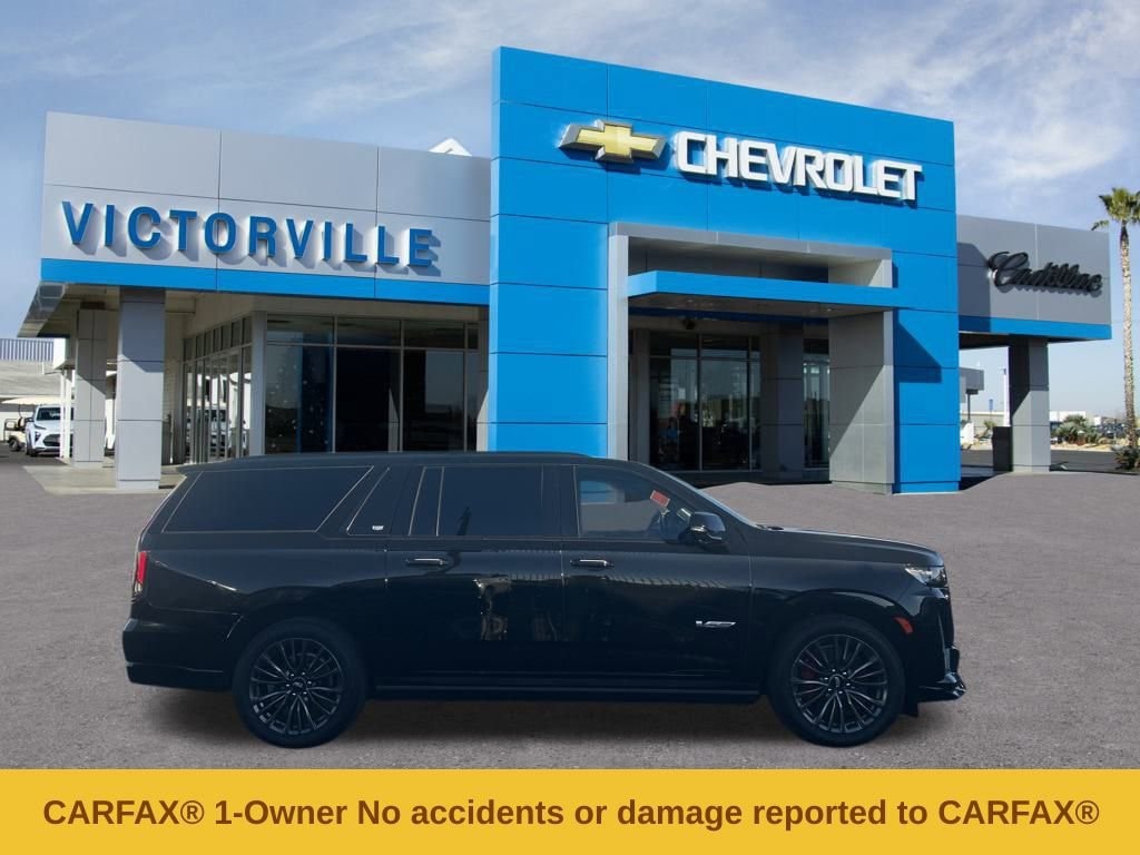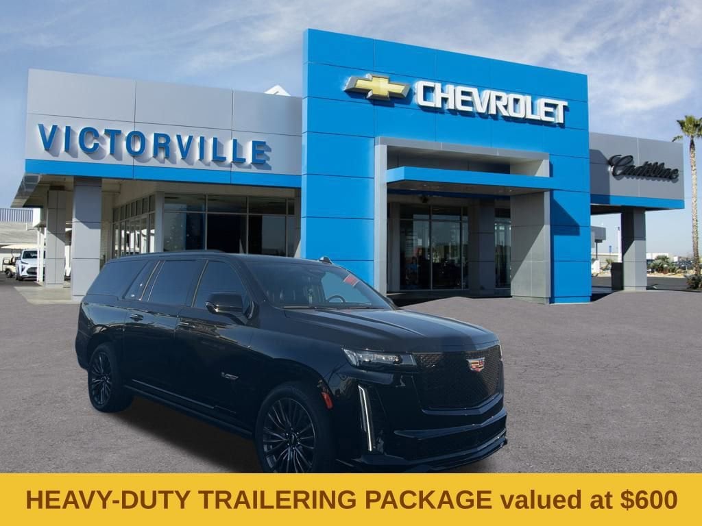 Escalade ESV V-Series, 4D Sport Utility, 6.2L V8 Supercharged, 10-Speed Automatic with Overdrive, AWD, Black Raven, Jet Black Leather. Odometer is 11884 miles below market average! CARFAX One-Owner. Clean CARFAX. Black Raven AWD 10-Speed Automatic with Overdrive 6.2L V8 Supercharged 11/16 City/Highway MPGBuy from the dealership voted best New Car Dealership in the High Desert by readers of the Daily Press!Heavy-Duty Trailering Package (Trailer Tire Pressure Monitoring System, Trailering Assist Guidelines, and Wired Auxiliary Trailer Camera (LPO)), Preferred Equipment Group 1SD (Active Noise Cancellation, Adaptive Cruise Control, AKG Studio Reference 36-Speaker Audio System, Automatic Seat Belt Tightening, Body-Color Door Handles, Door Lock & Latch Shields, Electronic Limited-Slip Differential, Enhanced Automatic Emergency Braking, Enhanced Automatic Parking Assist, Floor Console w/Covered Storage, Front Auxiliary 12-volt Power Outlet, Glass Breakage Sensor, Heated & Ventilated Driver & Front Passenger Seats, Hitch Guidance w/Hitch View, Integrated Trailer Brake Controller, Platinum Interior Trim, Power Lumbar Massage Driver Seat, Power Lumbar Massage Front Passenger Seat, Power Panoramic Tilt-Sliding Sunroof, Power-Retractable Assist Steps, Rear Camera Mirror, Rear Camera Mirror Washer, Rear Cross Traffic Alert, Rear Seat Entertainment System, Reconfigurable Full-Color Head-Up Display, Reverse Automatic Braking, Smart Trailer Integration Indicator, Theft-Deterrent Alarm System, Trailer Side Blind Zone Alert, Vehicle Inclination Sensor, and Vehicle Interior Movement Sensor), Touring Package (Air Ride Adaptive Suspension, Illuminating Front & Rear Sill Plates, and Soft Closing Front & Rear Doors), Escalade ESV V-Series, 4D Sport Utility, 6.2L V8 Supercharged, 10-Speed Automatic with Overdrive, AWD, Black Raven, Jet Black Leather, 16.9 Diagonal OLED Infotainment Screen, 2-Presets Memory For Driver Seat Adjuster, 3.23 Axle Ratio, 3rd row seats: split-bench, 4-Way Power Driver Lumbar Seat Adjuster, 4-Way Power Front Passenger Lumbar Seat Adjuster, 4-Wheel Disc Brakes, 8-Way Power Driver Seat Adjuster, 8-Way Power Front Passenger Seat Adjuster, A/V remote, ABS brakes, Adaptive suspension, Air Conditioning, Alloy wheels, AM/FM radio: SiriusXM with 360L, Apple CarPlay/Android Auto, Audio memory, Auto High-beam Headlights, Auto tilt-away steering wheel, Auto-dimming door mirrors, Automatic temperature control, Brake assist, Bumpers: body-color, Compass, Delay-off headlights, Door auto-latch, Driver door bin, Driver vanity mirror, Dual front impact airbags, Dual front side impact airbags, Electronic Stability Control, Emergency communication system: OnStar and Cadillac connected services capable, Exterior Parking Camera Rear, Four wheel independent suspension, Front anti-roll bar, Front Bucket Seats, Front Center Armrest w/Storage, Front dual zone A/C, Front License Plate Bracket, Front reading lights, Full Semi-Aniline Leather Seat Trim, Fully automatic headlights, Garage door transmitter, Genuine wood console insert, Genuine wood dashboard insert, Genuine wood door panel insert, HD Radio, Headphones, Heads-Up Display, Heated door mirrors, Heated Driver & Front Passenger Seats, Heated front seats, Heated rear seats, Heated steering wheel, Illuminated entry, Leather steering wheel, Low tire pressure warning, Magnetic Ride Control Suspension, Memory seat, Navigation System, Night vision lights, Occupant sensing airbag, Outside temperature display, Overhead airbag, Overhead console, Panic alarm, Passenger door bin, Passenger vanity mirror, Power door mirrors, Power driver seat, Power Liftgate, Power moonroof, Power passenger seat, Power steering, Power windows, Radio data system, Radio: AM/FM w/Navigation, Rain sensing wipers, Rear air conditioning, Rear anti-roll bar, Rear audio controls, Rear Cargo Shade (LPO), Rear reading lights, Rear window defroster, Rear window wiper, Remote keyless entry, Security system, SiriusXM