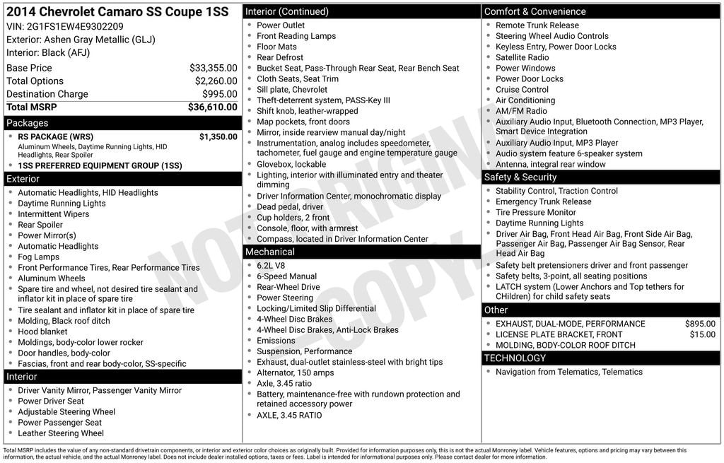 Ashen Gray Metallic 2014 Chevrolet Camaro SS 1SS RWD 6-Speed Manual with SS Performance 6.2L V8 SFI Camaro SS 1SS, 2D Coupe, 6.2L V8 SFI, 6-Speed Manual with SS Performance, RWD, Ashen Gray Metallic, Black Cloth.Why Buy from Victorville Chevrolet? We have received Chevroletâs Dealer of the Year award multiple years in a row. Been voted locally Best of the Desert by the Daily Press. We are the highest volume selling dealership in the high desert and treat you like family. At Victorville Chevrolet, we do things differently. Our team is built around accuracy, honesty, and accountability from your first interaction to the moment you drive home. We provide: Verified availability checked by real managers Transparent, upfront pricing with no hidden fees A relaxed, zero-pressure experience Fast, consistent communication Access to inventory across Southern California if we donât have your exact match A better Chevy experience starts right here at Victorville Chevrolet. Recent Arrival!Awards:* JD Power Dependability Study * 2014 KBB.com Best Resale Value Awards * 2014 KBB.com 10 Coolest New Cars Under $25,000 * 2014 KBB.com Brand Image AwardsWhy Buy from Victorville Chevrolet? We have received Chevroletâs Dealer of the Year award multiple years in a row. Been voted locally Best of the Desert by the Daily Press. We are the highest volume selling dealership in the high desert and treat you like family. At Victorville Chevrolet, we do things differently. Our team is built around accuracy, honesty, and accountability from your first interaction to the moment you drive home. We provide: Verified availability checked by real managers Transparent, upfront pricing with no hidden fees A relaxed, zero-pressure experience Fast, consistent communication Access to inventory across Southern California if we donât have your exact match A better Chevy experience starts right here at Victorville Chevrolet.Reviews:* Whether youâre a 20-something performance enthusiast seeking a car that boasts loads of power and aggressive looks, or a mid-lifer ready to get your crisis on/relive your youth, the 2014 Camaro offers serious thrills for the money. Source: KBB.com* Strong acceleration with any engine; head-turning looks; good V6 fuel economy; capable handling. Source: Edmunds
