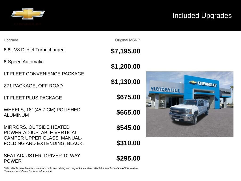 *The advertised price includes all costs to be paid by the consumer for the vehicle, excluding only government fees and taxes, any finance charges, any dealer document processing charge, any electronic filing charge, and any emission testing charge. Any dealer-installed equipment or accessories required for the purchase of the vehicle are included in the advertised price and are itemized on the vehicle or purchase contract. Optional products, accessories, or services—such as LoJack, windshield protection, battery protection, door edge guards, lift kits, running boards, floor liners, Royal Truck Bodies, or similar items—are not required to purchase the vehicle and may be purchased separately at an additional cost. All optional products will be clearly disclosed and itemized prior to sale and may be declined by the customer. Prices, specifications, and availability may change without notice. Not all customers will qualify for advertised incentives. See dealer for complete details. MSRP is shown for information purposes only. MSRP is not the dealer's advertised or asking price. In some instances, vehicles will sell above the MSRP.