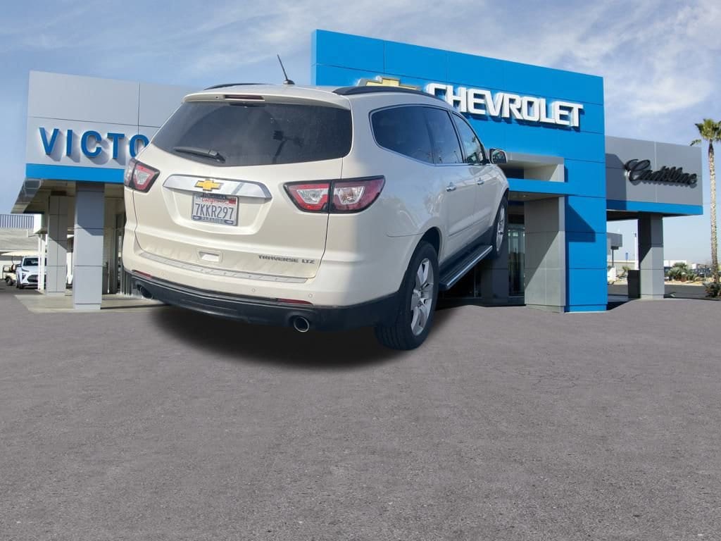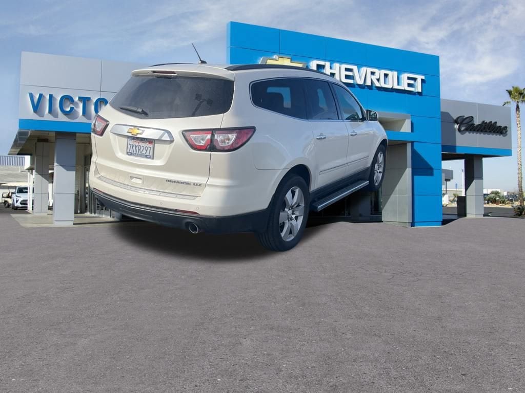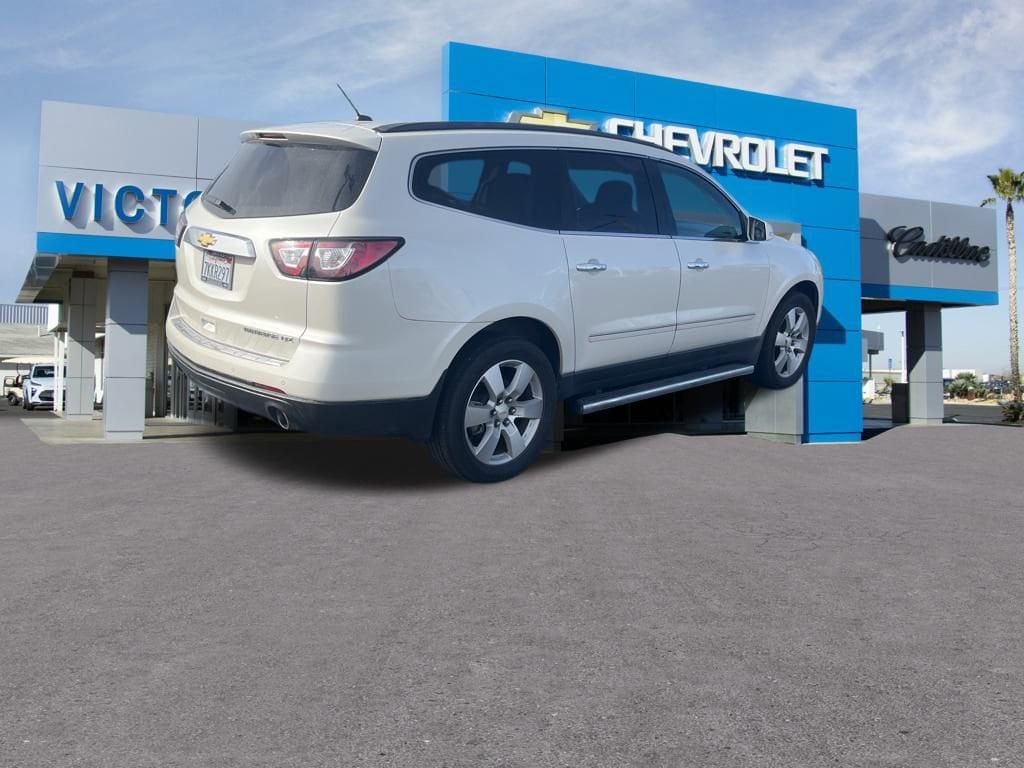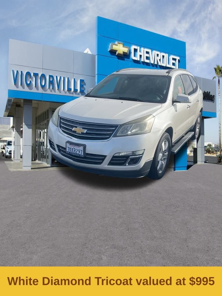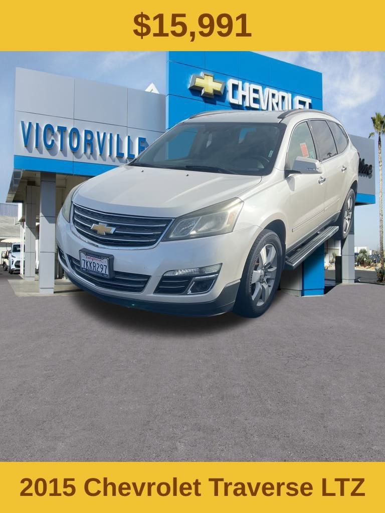 White Diamond Tricoat 2015 Chevrolet Traverse LTZ FWD 6-Speed Automatic 3.6L V6 SIDI Traverse LTZ, 4D Sport Utility, 3.6L V6 SIDI, 6-Speed Automatic, FWD, White Diamond Tricoat, Ebony Leather.Why Buy from Victorville Chevrolet? We have received Chevroletâs Dealer of the Year award multiple years in a row. Been voted locally Best of the Desert by the Daily Press. We are the highest volume selling dealership in the high desert and treat you like family. At Victorville Chevrolet, we do things differently. Our team is built around accuracy, honesty, and accountability from your first interaction to the moment you drive home. We provide: Verified availability checked by real managers Transparent, upfront pricing with no hidden fees A relaxed, zero-pressure experience Fast, consistent communication Access to inventory across Southern California if we donât have your exact match A better Chevy experience starts right here at Victorville Chevrolet. Recent Arrival! Odometer is 41194 miles below market average!Awards:* JD Power Initial Quality Study, JD Power Dependability Study * JD Power Initial Quality Study * 2015 KBB.com Best Buy Awards Finalist * 2015 KBB.com 10 Best Certified Pre-Owned 3-Row SUVs Under $30,000Why Buy from Victorville Chevrolet? We have received Chevroletâs Dealer of the Year award multiple years in a row. Been voted locally Best of the Desert by the Daily Press. We are the highest volume selling dealership in the high desert and treat you like family. At Victorville Chevrolet, we do things differently. Our team is built around accuracy, honesty, and accountability from your first interaction to the moment you drive home. We provide: Verified availability checked by real managers Transparent, upfront pricing with no hidden fees A relaxed, zero-pressure experience Fast, consistent communication Access to inventory across Southern California if we donât have your exact match A better Chevy experience starts right here at Victorville Chevrolet.Reviews:* If you want a big, 3-row midsize SUV that starts under $32,000, holds up to eight passengers, and has a standard V6 and that returns decent fuel economy, the 2015 Chevy Traverse remains a tempting family hauler. Source: KBB.com* Compliant ride quality; generous cargo capacity, even behind the third row; seating for up to eight passengers; top crash test scores. Source: Edmunds