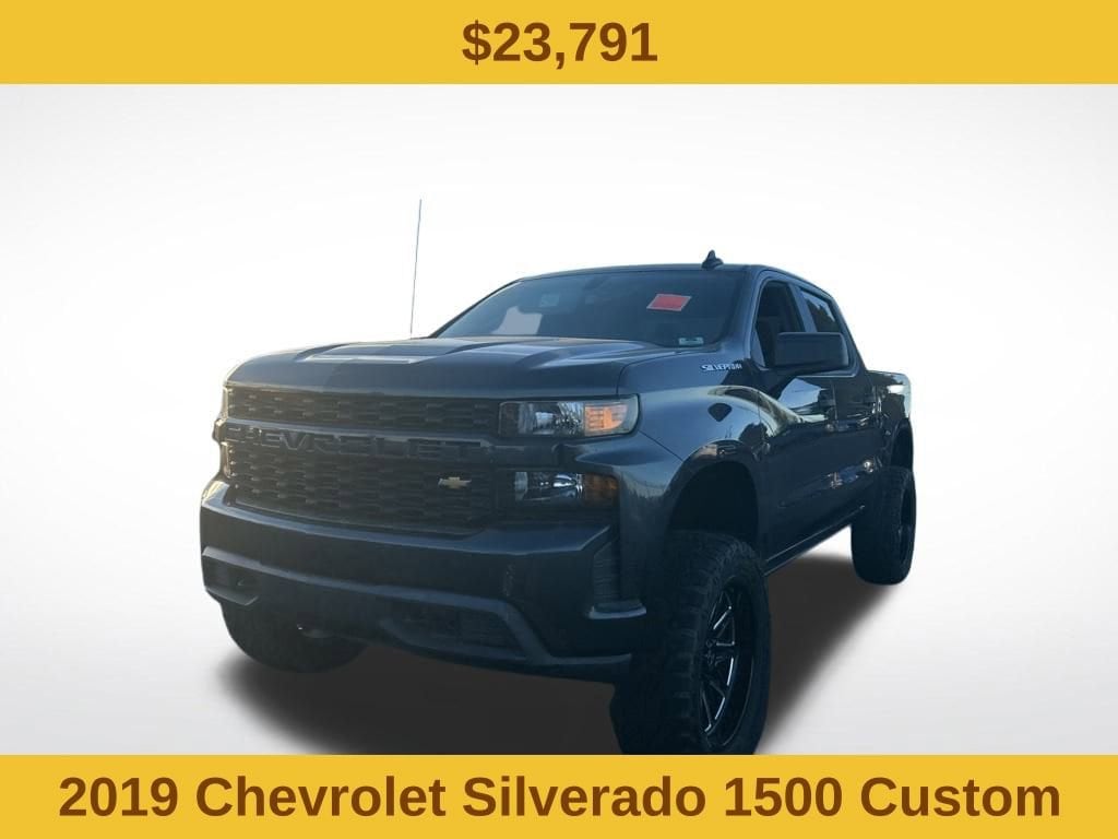 Custom Convenience Package (Electric Rear-Window Defogger, EZ Lift Power Lock & Release Tailgate, LED Cargo Area Lighting, Remote Vehicle Starter System, and Theft Deterrent System (Unauthorized Entry)), Custom Value Package, Infotainment Package (Chevrolet Connected Access, Chevrolet w/4G LTE, Compass, OnStar & Chevrolet Connected Services Capable, and SiriusXM Radio), Preferred Equipment Group 1CX (170 Amp Alternator, 3.5 Diagonal Monochromatic Display, Bluetooth® For Phone, Body Color Grille, Color-Keyed Carpeting Floor Covering, Deep-Tinted Glass, Electronic Cruise Control, Front Frame-Mounted Black Recovery Hooks, Front Rubberized Vinyl Floor Mats, Locking Tailgate, Manual Tilt Wheel Steering Column, Power Door Locks, Power Front Windows w/Driver Express Up/Down, Power Front Windows w/Passenger Express Down, Power Rear Windows w/Express Down, Rear 60/40 Folding Bench Seat (Folds Up), Rear Rubberized-Vinyl Floor Mats, and Remote Keyless Entry), Trailering Package (Hitch Guidance), Silverado 1500 Custom, 4D Crew Cab, EcoTec3 5.3L V8, 6-Speed Automatic Electronic with Overdrive, RWD, Shadow Gray Metallic, Black Cloth, 3.42 Rear Axle Ratio, 4-Wheel Disc Brakes, 6 Speakers, ABS brakes, Air Conditioning, All-Weather Floor Liner (LPO), Alloy wheels, AM/FM radio, Apple CarPlay/Android Auto, Auxiliary External Transmission Oil Cooler, Brake assist, Bumpers: body-color, Cloth Seat Trim, Delay-off headlights, Driver door bin, Driver vanity mirror, Dual Exhaust w/Polished Outlets, Dual front impact airbags, Dual front side impact airbags, Electronic Stability Control, Exterior Parking Camera Rear, Front 40/20/40 Split-Bench Seat, Front anti-roll bar, Front Center Armrest, Front License Plate Kit, Front reading lights, Front wheel independent suspension, Fully automatic headlights, Heated door mirrors, Heavy Duty Suspension, Heavy-Duty Rear Locking Differential, Illuminated entry, Low tire pressure warning, Occupant sensing airbag, Outside temperature display, Overhead airbag, Overhead console, Panic alarm, Passenger door bin, Passenger vanity mirror, Polished Exhaust Tip, Power door mirrors, Power steering, Power windows, Premium audio system: Chevrolet Infotainment System 3, Radio data system, Radio: Chevrolet Infotainment 3 System, Rear reading lights, Rear step bumper, Remote keyless entry, Speed control, Speed-sensing steering, Split folding rear seat, Tachometer, Tilt steering wheel, Traction control, Trip computer, Variably intermittent wipers, Voltmeter, and Wheels: 20 x 9 Bright Silver Painted Aluminum.