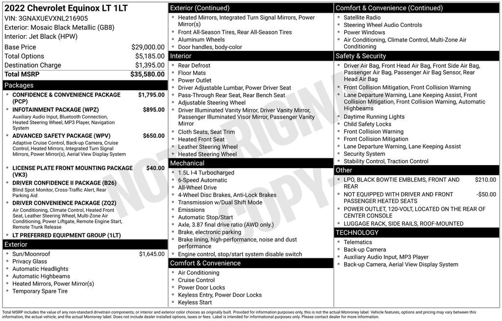Mosaic Black Metallic 2022 Chevrolet Equinox LT AWD 6-Speed Automatic Electronic with Overdrive 1.5L DOHC AWD.