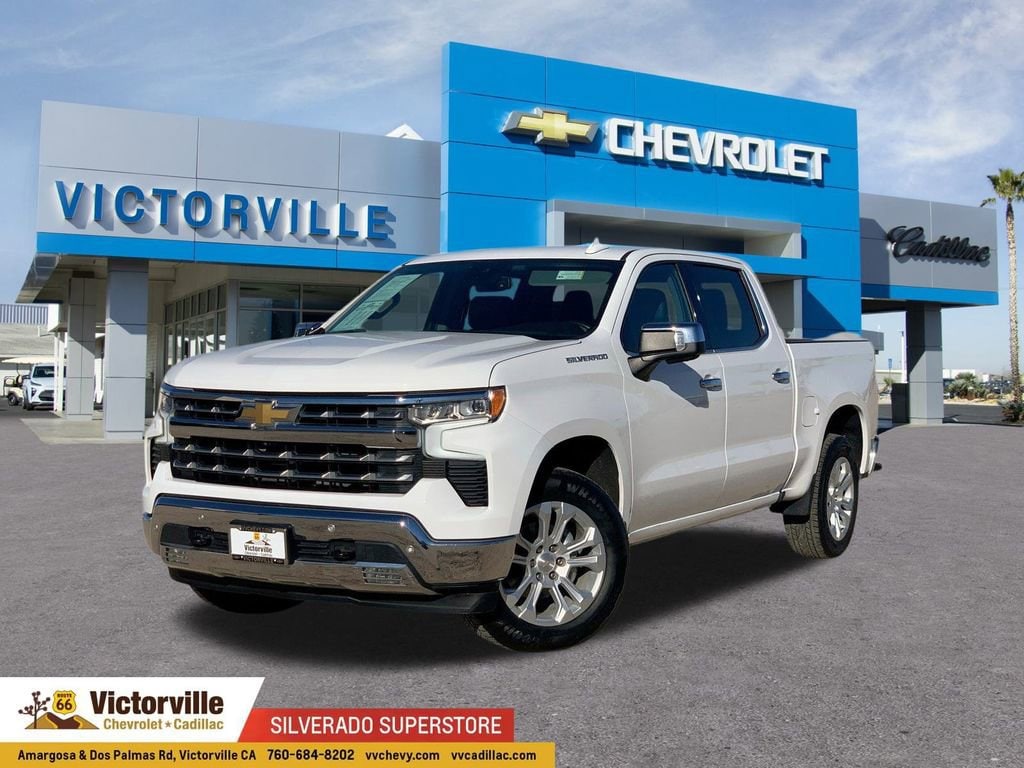 Silverado 1500 LTZ, 4D Crew Cab, EcoTec3 5.3L V8, 10-Speed Automatic, RWD, Summit White, Black Leather. Odometer is 4917 miles below market average! CARFAX One-Owner. Summit White RWD 10-Speed Automatic EcoTec3 5.3L V8 17/21 City/Highway MPGBuy from the dealership voted best New Car Dealership in the High Desert by readers of the Daily Press!High Capacity Suspension Package, LTZ Convenience Package (2 USB Data Ports, Floor Mounted Center Console, Power Tilt & Telescoping Steering Column, Premium Bose 7-Speaker Sound System, Ventilated Driver & Front Passenger Seats, and Wireless Charging), LTZ Plus Package, Preferred Equipment Group 1LZ (10-Way Power Driver Seat w/Lumbar, 10-Way Power Passenger Seat Adjuster w/Lumbar, 12.3 Multicolor Reconfigurable Digital Display, 120-Volt Bed Mounted Power Outlet, 120-Volt Instrument Panel Power Outlet, Auto-Dimming Inside Rear-View Mirror, Auto-Locking Rear Differential, Bluetooth® For Phone, Chevrolet Connected Access Capable, Chrome Mirror Caps, Color-Keyed Carpeting Floor Covering, Compass, Deep-Tinted Glass, Driver Memory, Dual Rear USB Ports (Charge Only), Electric Rear-Window Defogger, Electrical Steering Column Lock, Electronic Cruise Control, Front LED Fog Lamps, Front Rainsensing Wipers, Front Rubberized Vinyl Floor Mats, Heated Driver & Front Outboard Passenger Seats, Heated Steering Wheel, Hitch Guidance w/Hitch View, Integrated Trailer Brake Controller, Keyless Open & Start, LED Cargo Area Lighting, OnStar & Chevrolet Connected Services Capable, Outside Heated Power-Adjustable Mirrors, Power Front Passenger Windows w/Express Up/Down, Power Front Windows w/Driver Express Up/Down, Power Rear Windows w/Express Down, Power Tailgate, Rear Rubberized-Vinyl Floor Mats, Rear Wheelhouse Liners, Remote Vehicle Starter System, SiriusXM w/360L, Standard Tailgate, Steering Wheel Audio Controls, Theft Deterrent System (Unauthorized Entry), Trailering App, Wi-Fi Hot Spot Capable, Wireless Phone Projection, and Wrapped Steering Wheel), Safety Package (Front Frame-Mounted Black Recovery Hooks, HD Surround Vision, Perimeter Lighting, Rear Cross Traffic Alert-Braking, Rear Pedestrian Alert, Safety Alert Seat, Trailer Camera Provisions, Trailer Side Blind Zone Alert, and Ultrasonic Front & Rear Park Assist), Trailering Package (Hitch Guidance), Up-Level Rear Seat w/Storage Package, Silverado 1500 LTZ, 4D Crew Cab, EcoTec3 5.3L V8, 10-Speed Automatic, RWD, Summit White, Black Leather, 170 Amp Alternator, 3.23 Rear Axle Ratio, 4-Wheel Disc Brakes, 7 Speakers, ABS brakes, Air Conditioning, Alloy wheels, AM/FM radio: SiriusXM with 360L, Apple CarPlay/Android Auto, Auto High-beam Headlights, Auto-dimming door mirrors, Auto-dimming Rear-View mirror, Automatic Emergency Braking, Automatic temperature control, Brake assist, Bumpers: chrome, Delay-off headlights, Driver door bin, Driver vanity mirror, Dual front impact airbags, Dual front side impact airbags, Electronic Stability Control, Electronic Transmission Range Selector Shifter, Following Distance Indicator, Forward Collision Alert, Front anti-roll bar, Front Bucket Seats, Front Center Armrest, Front dual zone A/C, Front fog lights, Front License Plate Kit, Front Pedestrian Braking, Front reading lights, Front wheel independent suspension, Fully automatic headlights, Heated door mirrors, Heated front seats, Heated steering wheel, Illuminated entry, IntelliBeam Automatic High Beam On/Off, Lane Keep Assist w/Lane Departure Warning, Low tire pressure warning, Memory seat, Not Equipped w/Steering Column Lock, Occupant sensing airbag, Outside temperature display, Overhead airbag, Overhead console, Panic alarm, Passenger door bin, Passenger vanity mirror, Perforated Leather-Appointed Front Seat Trim, Power door mirrors, Power driver seat, Power passenger seat, Power steering, Power windows, Premium audio system: Chevrolet Infotainment 3 Premium, Radio data system, Radio: Chevrolet Infotainment 3 Premium System, Rain sensing wipers, Rear r