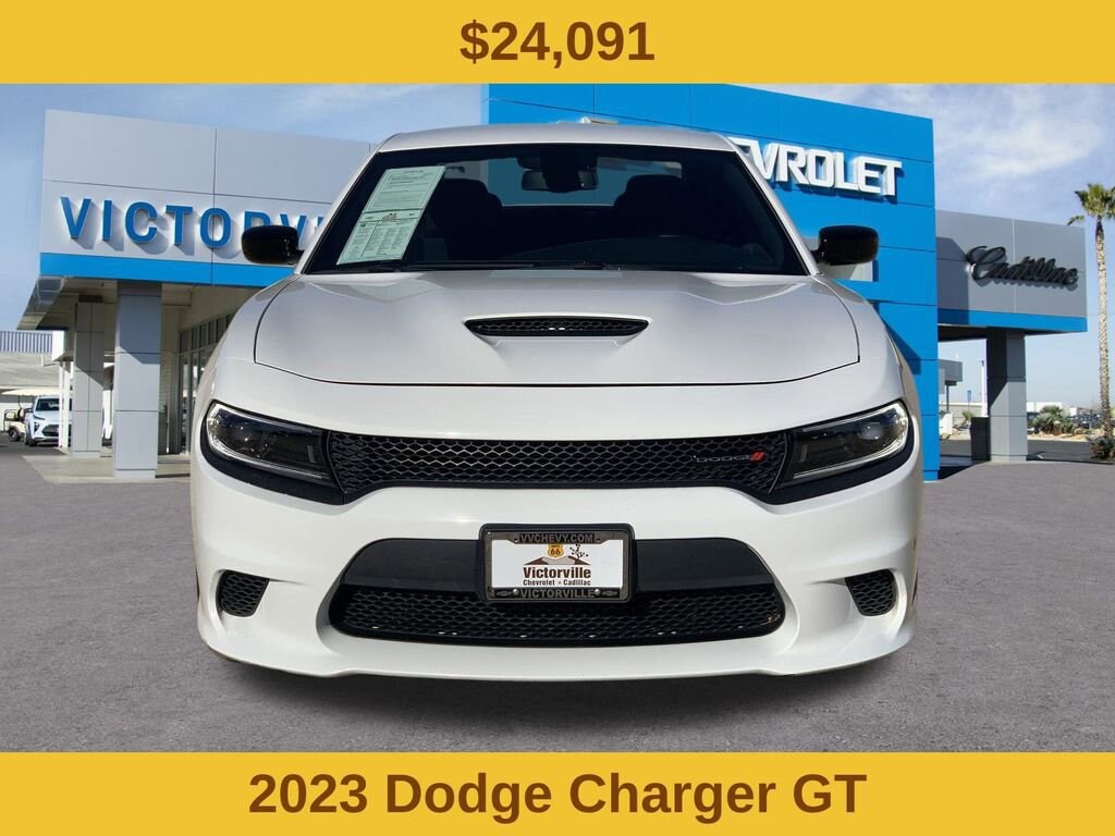 Quick Order Package 2EH, Charger GT, 4D Sedan, 3.6L V6 24V VVT, 8-Speed Automatic, RWD, White Knuckle Clearcoat, Black Cloth, 1-Yr SiriusXM Guardian Trial, 2-Piece Shark Fin Antenna, 4-Wheel Disc Brakes, 4G LTE Wi-Fi Hot Spot, 6 Speakers, 8.4 Touchscreen Display, ABS brakes, Air Conditioning, Alloy wheels, AM/FM radio: SiriusXM, Anti-whiplash front head restraints, Apple CarPlay, Apple CarPlay/Android Auto, Auto-dimming Rear-View mirror, Automatic temperature control, Brake assist, Bumpers: body-color, Cloth Performance Seats, Compass, Delay-off headlights, Driver door bin, Driver vanity mirror, Dual front impact airbags, Dual front side impact airbags, Electronic Stability Control, Emergency communication system: SiriusXM Guardian, For Details, Visit DriveUconnect.com, Four wheel independent suspension, Front anti-roll bar, Front Bucket Seats, Front Center Armrest, Front dual zone A/C, Front License Plate Bracket, Front reading lights, Fully automatic headlights, Garage door transmitter: HomeLink, Google Android Auto, GPS Antenna Input, HD Radio, Heated door mirrors, Illuminated entry, Integrated Center Stack Radio, Integrated Voice Command w/Bluetooth, Knee airbag, Leather Shift Knob, Low tire pressure warning, Manufacturer's Statement of Origin, Media Hub (2 USB, AUX), Occupant sensing airbag, Outside temperature display, Overhead airbag, Overhead console, Panic alarm, ParkView Rear Back-Up Camera, Passenger door bin, Passenger vanity mirror, Power 2-Way Driver Lumbar Adjust, Power 8-Way Driver Seat, Power door mirrors, Power driver seat, Power steering, Power windows, Radio: Uconnect 4C w/8.4 Display, Rear anti-roll bar, Rear Armrest w/Cupholder Seat, Rear reading lights, Rear seat center armrest, Rear window defroster, Remote keyless entry, Speed control, Speed-Sensitive Wipers, Split folding rear seat, Spoiler, Steering wheel mounted audio controls, Tachometer, Telescoping steering wheel, Tilt steering wheel, Traction control, Trip computer, USB Host Flip, Variably intermittent wipers, and Wheels: 20 x 8 Satin Carbon PainteD.