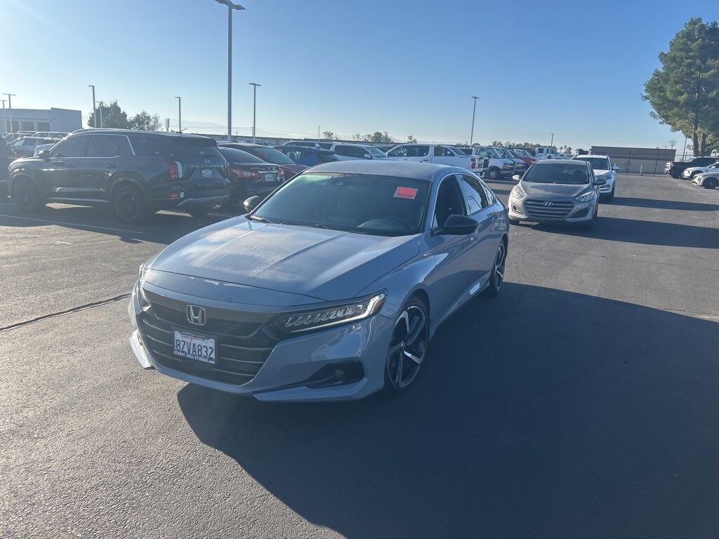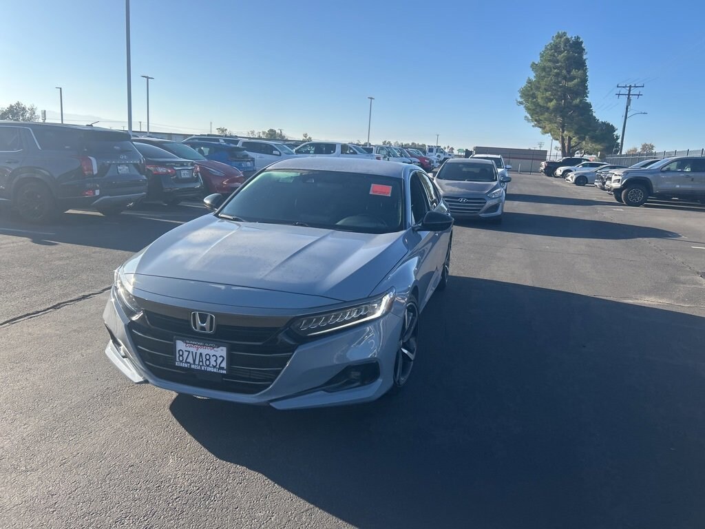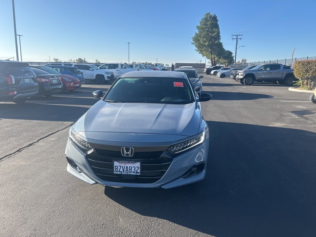 Accord Sport, 4D Sedan, 1.5T I4 DOHC 16V Turbocharged VTEC, CVT, FWD, Sonic Gray Pearl, Black Artificial Leather, 4-Wheel Disc Brakes, 8 Speakers, ABS brakes, Adaptive Cruise Control: Adaptive Cruise Control (ACC) with Low-Speed Follow, Air Conditioning, Alloy wheels, AM/FM radio, Apple CarPlay/Android Auto, Auto High-beam Headlights, Automatic temperature control, Brake assist, Bumpers: body-color, Delay-off headlights, Driver door bin, Driver vanity mirror, Dual front impact airbags, Dual front side impact airbags, Electronic Stability Control, Emergency communication system: HondaLink, Exterior Parking Camera Rear, Fabric w/Synthetic Leather Seat Trim, Forward collision: Collision Mitigation Braking System (CMBS) + FCW mitigation, Four wheel independent suspension, Front anti-roll bar, Front Bucket Seats, Front Center Armrest, Front dual zone A/C, Front fog lights, Front reading lights, Fully automatic headlights, Illuminated entry, Knee airbag, Lane Departure Warning System, Leather Shift Knob, Leather steering wheel, Low tire pressure warning, Occupant sensing airbag, Outside temperature display, Overhead airbag, Overhead console, Panic alarm, Passenger door bin, Passenger vanity mirror, Power door mirrors, Power driver seat, Power steering, Power windows, Radio data system, Radio: 180-Watt AM/FM Audio System, Rear anti-roll bar, Rear seat center armrest, Rear window defroster, Remote keyless entry, Security system, Speed control, Speed-sensing steering, Speed-Sensitive Wipers, Split folding rear seat, Spoiler, Steering wheel mounted audio controls, Tachometer, Telescoping steering wheel, Tilt steering wheel, Traction control, Trip computer, Variably intermittent wipers, and Wheels: 19 Machine-Finished Alloy w/Black Inserts.