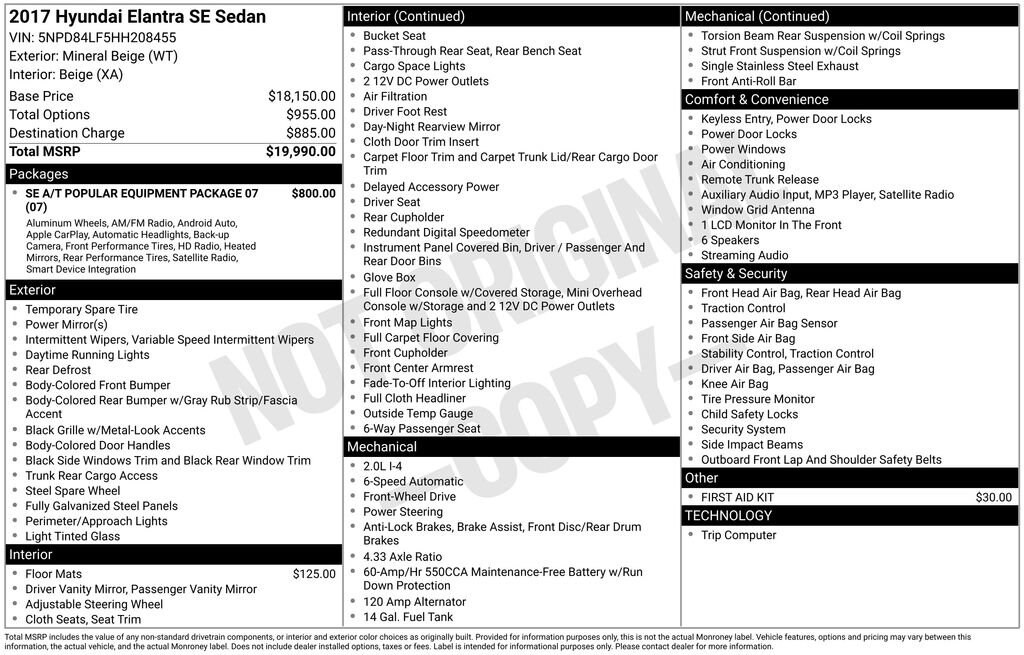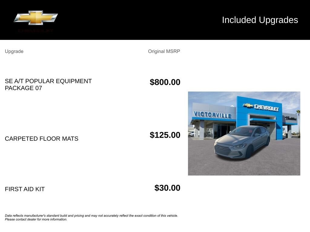 Mineral Beige 2017 Hyundai Elantra SE FWD 6-Speed Automatic 2.0L 4-Cylinder DOHC 16VWhy Buy from Victorville Chevrolet? We have received Chevroletâs Dealer of the Year award multiple years in a row. Been voted locally Best of the Desert by the Daily Press. We are the highest volume selling dealership in the high desert and treat you like family. At Victorville Chevrolet, we do things differently. Our team is built around accuracy, honesty, and accountability from your first interaction to the moment you drive home. We provide: Verified availability checked by real managers Transparent, upfront pricing with no hidden fees A relaxed, zero-pressure experience Fast, consistent communication Access to inventory across Southern California if we donât have your exact match A better Chevy experience starts right here at Victorville Chevrolet. Recent Arrival! 29/38 City/Highway MPGAwards:* 2017 KBB.com 10 Most Awarded BrandsWhy Buy from Victorville Chevrolet? We have received Chevroletâs Dealer of the Year award multiple years in a row. Been voted locally Best of the Desert by the Daily Press. We are the highest volume selling dealership in the high desert and treat you like family. At Victorville Chevrolet, we do things differently. Our team is built around accuracy, honesty, and accountability from your first interaction to the moment you drive home. We provide: Verified availability checked by real managers Transparent, upfront pricing with no hidden fees A relaxed, zero-pressure experience Fast, consistent communication Access to inventory across Southern California if we donât have your exact match A better Chevy experience starts right here at Victorville Chevrolet.